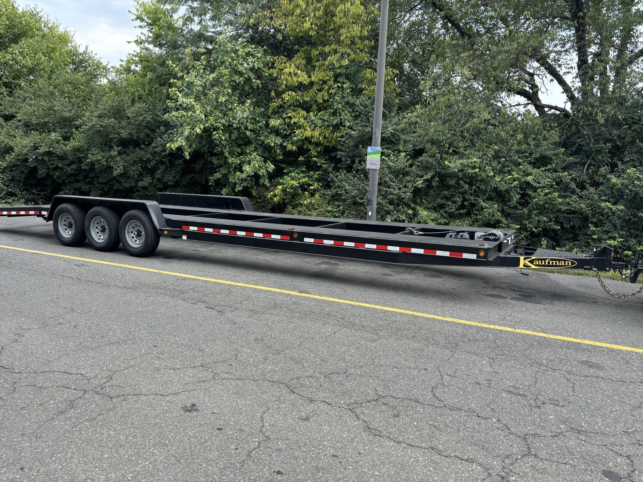 Need to haul 2 cars? Have a few sxs going on a trip? This triaxle 34' (27' flat 7' dovetail, with 6' ramps under the rear of trailer) long trailer can handle pretty much anything you may need to transport. Three 7,000lb axles, each with electric breaks. This trailer has a GVWR of 14,000lbs and weighs 4300lbs empty. Included is a 9,000lb winch. Comes with a 20,000lb hitch and straps at no additional charge. No mileage limit. 39' open gap in the middle.