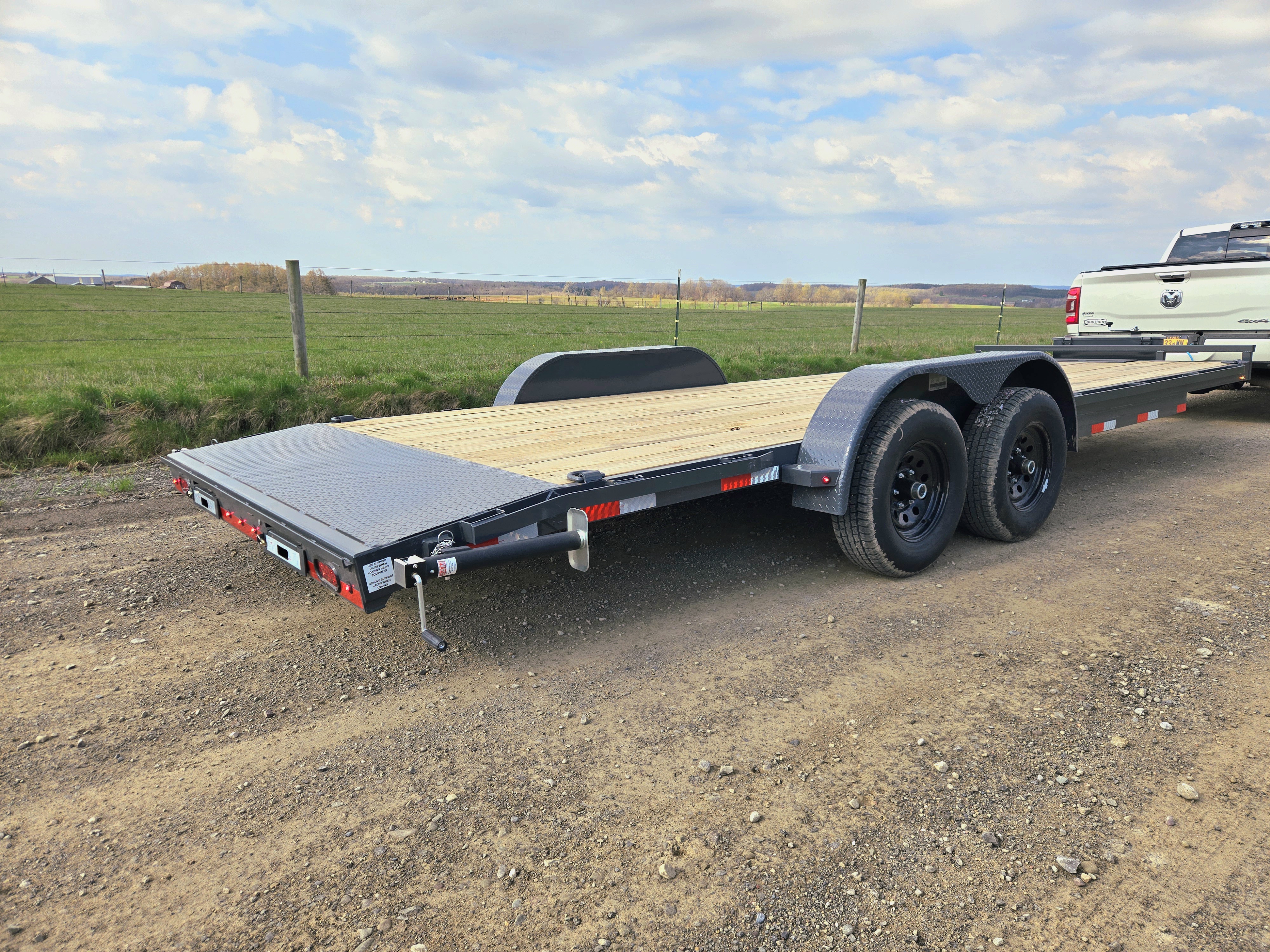 2026 Lamar Car Hauler 7x22 with Tool Box and Straps available Rear Support Jacks Slide Out Ramps
