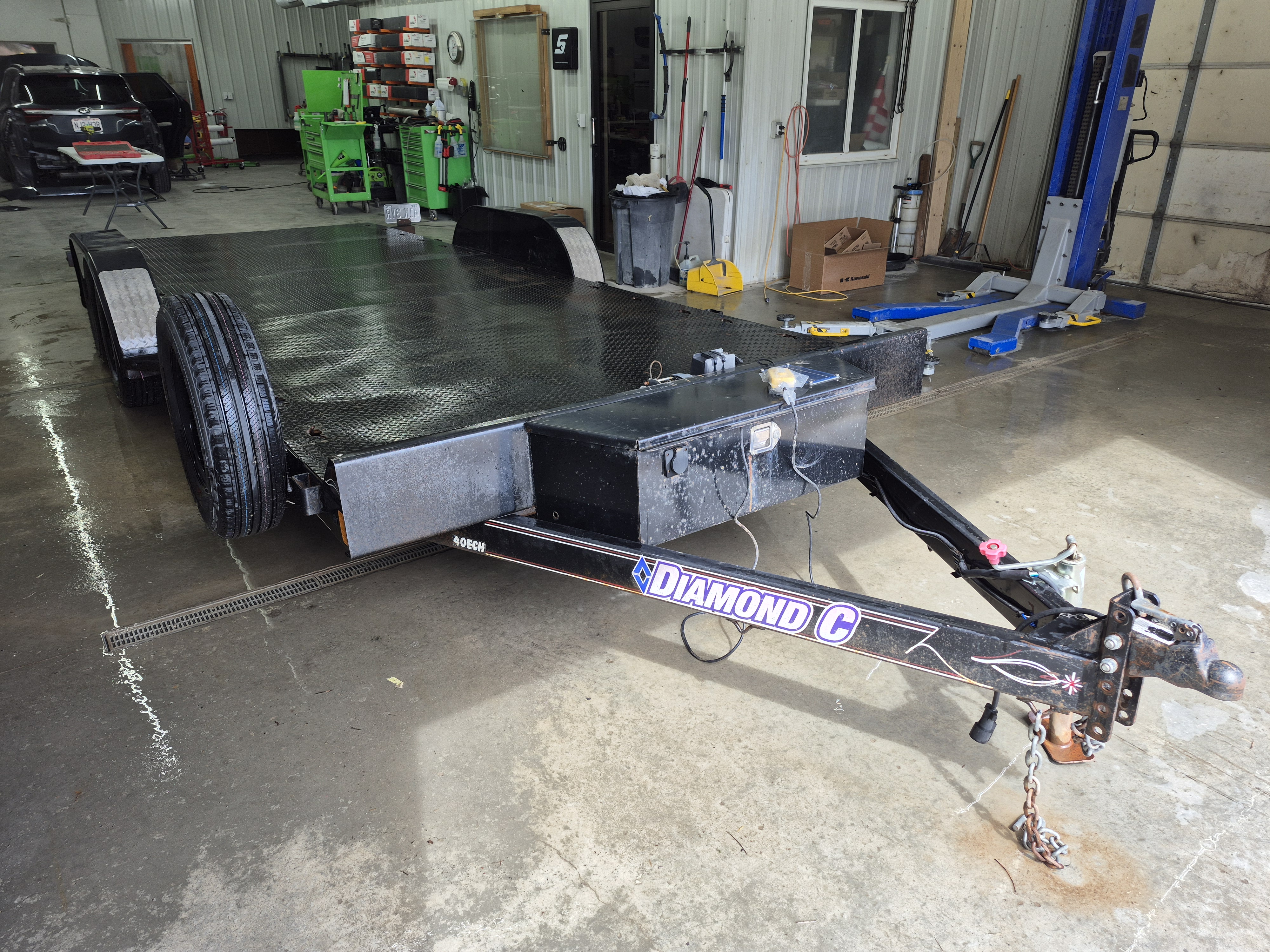 This is a 2016 Diamond C brand Car Hauler trailer. The trailer floor is all steel and measures 83" wide by 20' long. Features include: Full hydraulic-tilt bed for ease of loading cargo. Front-mounted tool box for hydraulic pump, battery, and ratchet strap storage. Light-duty electric brakes. Spare tire Onboard. Stake-pockets along each side for ease of securing cargo. Medium-duty winch available upon request. Requires 2" ball and 7-pin round connector. Last 6 of VIN: 173635