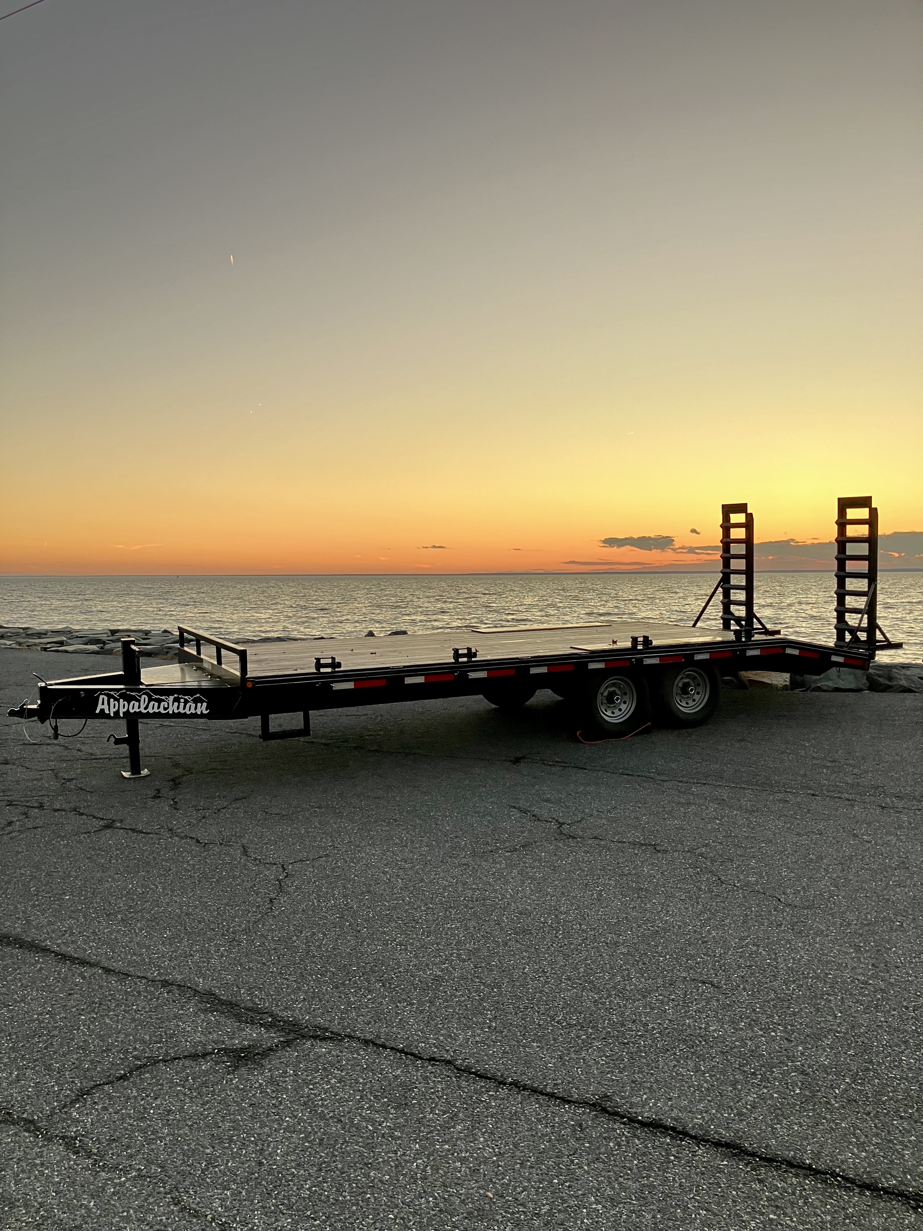This is a deck-over flatbed is ready to haul equipment or material. -8.5 feet wide and 22 feet long. (4 foot dovetail) -Payload capacity of 10,000lbs. (GVWR 14,000, Dry weight 4,000) -5x chain binders & chains for equipment securement -4x strap winches & corner protectors for loose material & pallets -2-5/16" ball or pintle available