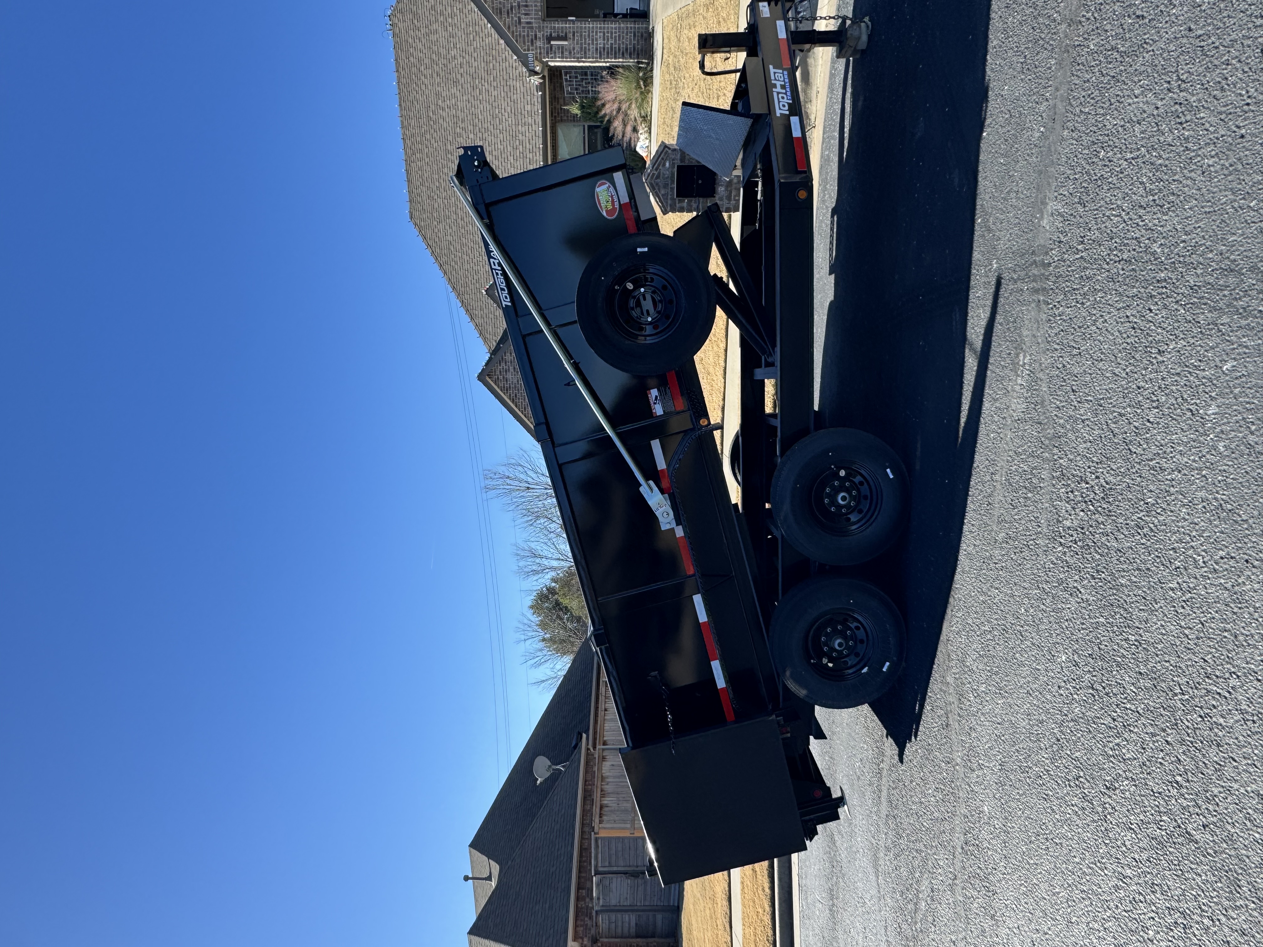 7' x 14' Heavy-duty dump trailer with 3’ sidewalls and tandem 7,000 lb axles. Built with all-steel construction and all-wheel electric brakes for reliable hauling. Features a long-arm tarp system for covered transport, four D-rings inside the box, dual swinging doors with spreader gate, and two 7’ steel ramps for easy loading.