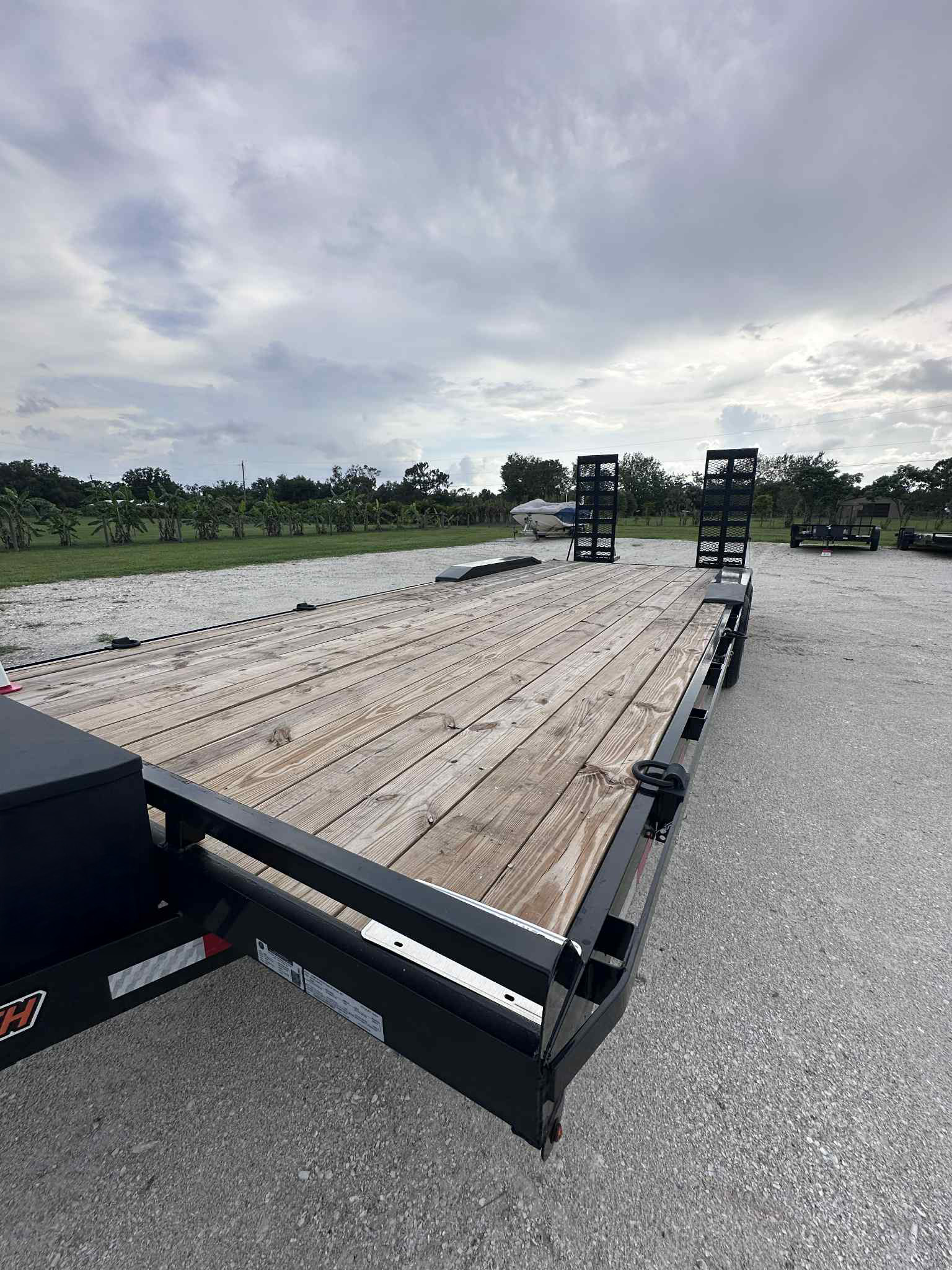 8x5 x24 Drive Over Fender comes equipped with a jack, lug wrench and (4) 2 in x 27 ft ratchet straps. GVW 14,000 lbs. Ball 2 5/16. Electric Brakes