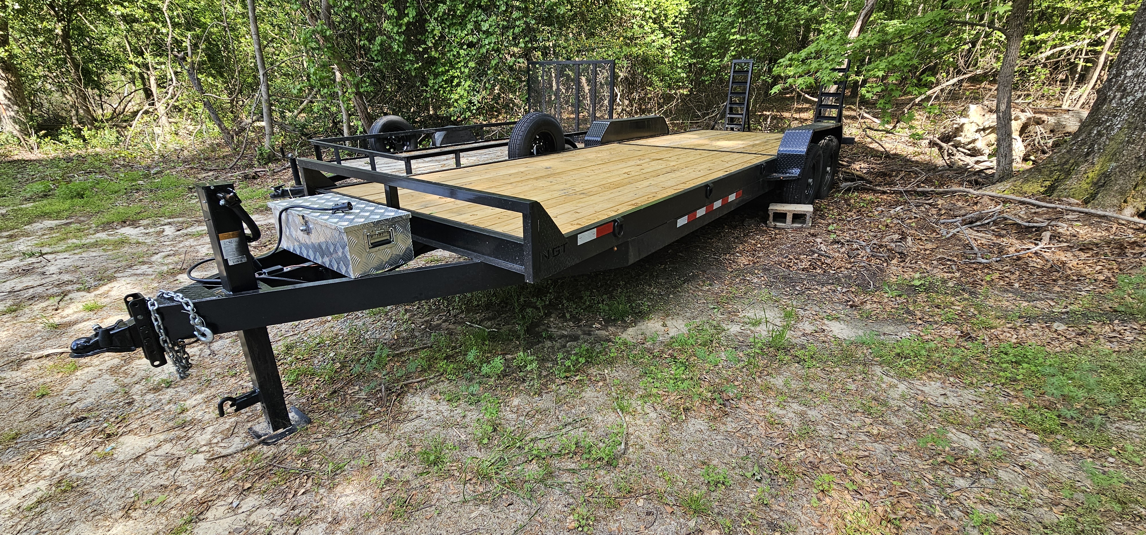 7X24 equipment trailer with 2 7,000lb axles. Comes with spare tire.