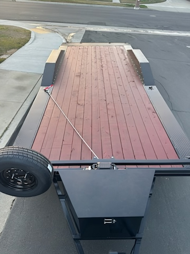 20' long, 6' ramps, 12k winch, 82" between fenders, 102" wide. Drive over fenders.