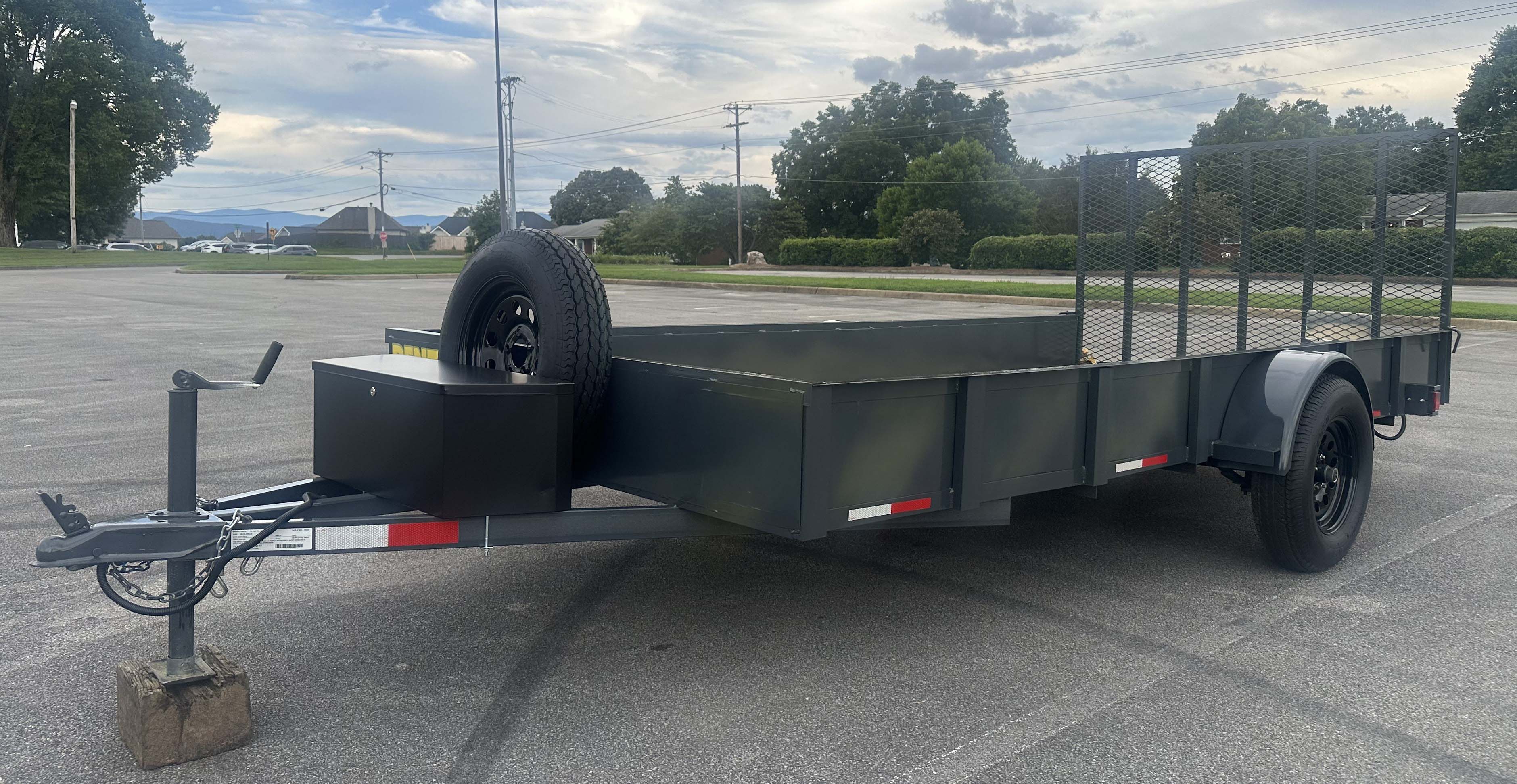 Our 6.5’ X 14’ (Top Tier) Steel-Sided Utility currently comes equipped with: • Steel sides for added cargo securement. • Single 3500 lb. axle • Tongue storage box • Rear Gate • (6) – Heavy duty D-rings installed for extra tie down points As a bonus to our customers, we offer (at no additional charge): • (4)-16’ Tie Down Strap Set with Padded Handles & Coated S Hook W/Safety Clip • (4)- 15’ Rachet Strap Tie-down set • Spare tire • 12-ton bottle jack • 4 way lug wrench